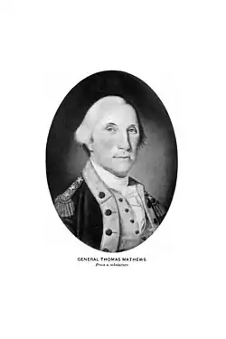Thomas Mathews (1742–February 20, 1812) was an American Revolutionary War general and Virginia lawyer and politician. For almost two decades (with minor interruptions), Mathews represented variously Norfolk Borough and Norfolk County in the Virginia House of Delegates, and served as that body's Speaker from 1782 until 1793.[1][2] He also represented Norfolk at the Virginia Ratifying Convention of 1788.