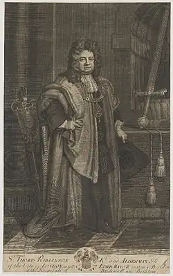 Sir Thomas Rawlinson (1647 – 1708) was an English merchant who served as the Lord Mayor of London in 1705. He became president of Bridewell and Bethlehem Hospitals.