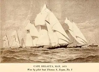 ![]() Over the Cape May Course, 1873; Won by pilot boat Thomas S. Negus, No. 1.