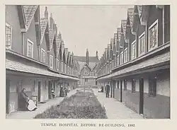 In 1613 he erected and endowed a hospital in Temple St., Bristol, called the Temple Hospital, for eight men and two women, and one man and one woman were afterwards added by himself.[6] In 1622 he gave to Bristol houses in Gray's Inn Lane, London, to support various charities. He had friendly relations with the Merchant Taylors' Company; White in his will made the company nominators to eight out of the twenty places provided in his almshouses at Sion College, and the company were also connected as auditors with the moral philosophy lecture which he had founded at Oxford in 1621. Five exhibitions were made for scholars of Magdalen Hall, and the manor of Langdon Hill, Essex, was conveyed to the university.