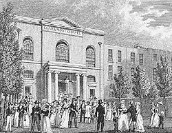 - 1819: Claremont Chapel on Pentonville Road.[1] The chapel was used to 1899, after which it was known as Claremont Hall. It is unclear whom Wilson used as designer, one possibility being John Wallen, or his brother William.[18][19] From 1822, John Blackburn was the permanent minister there.[19]