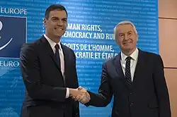 In 2009, Jagland was elected as the secretary-general of the Council of Europe.[7][8] In 2014 he was reelected for an additional five years.[9] His tenure as secretary-general has been controversial, and he has been accused of inaction against corruption[10][11] and of servility towards Putin's Russia.[12] Jagland was a member of the Norwegian Nobel Committee, and left in 2020;[13] he formerly served as its chairman from 2009 to 2015.