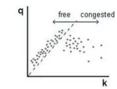 Figure 1: Measured flow rate versus vehicle density in free flow (fictitious data)