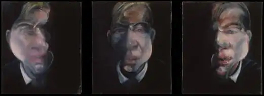 Three Studies for a Self-Portrait is an oil-on-canvas triptych painting by the Irish-born English artist Francis Bacon. Two of paintings are signed and dated 1979, and the third signed and dated 1979–1980.[1][2] The work can be viewed as a penetrating self-examinations undertaken in the aftermath of the suicide of his lover George Dyer, and as one of a series of inward looking self-portraits completed during the 1970s. Bacon was seventy at the time, but appears as ageless.[3]