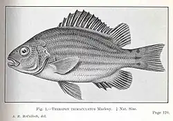 The threespot grunter (Hephaestus trimaculatus) is a species of freshwater ray-finned fish in the family Terapontidae. It is endemic to Papua New Guinea, where it is found only in the Laloki River near Port Moresby living in rock pools in the lower part of the river. The eggs are guarded and fanned by the male.[2]