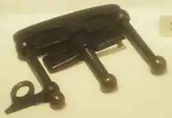 As late as the mid-18th century, the ex-slave Olaudah Equiano, in his autobiography The Interesting Narrative of the Life of Olaudah Equiano, documented the use of thumbscrews to torture slaves.[7] During this period (mid-18th century), Thomas Clarkson carried thumbscrews with him to further his cause for the abolition of the slave trade and later emancipation of slaves in the British Empire. He hoped to, and did, inspire empathy with the display of this and other torture devices used on slaves.[8] They were used on slave ships, as witnessed and described by Equiano and Ottobah Cugoano.[9]