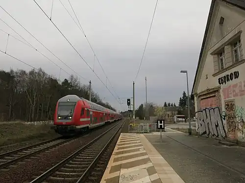 Thyrow station is a railway station in the Thyrow district of the municipality of Trebbin, located in the Teltow-Fläming district in Brandenburg, Germany.