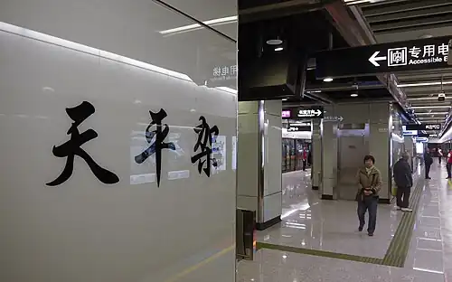 Tianpingjia Station (Chinese: 天平架站; pinyin: Tiānpíngjià Zhàn; Jyutping: tin1ping4gaa3 zaam6) is a station on Line 6 of the Guangzhou Metro. It is located underground in the Tianhe District of Guangzhou and started operation on 28 December 2013.[1]