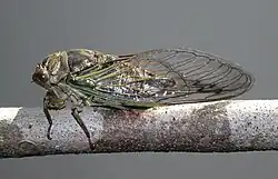 - ^ Hill, Kathy B. R.; Marshall, David C.; Moulds, Maxwell S.; Simon, Chris (10 July 2015). "Molecular phylogenetics, diversification, and systematics of Tibicen Latreille 1825 and allied cicadas of the tribe Cryptotympanini, with three new genera and emphasis on species from the USA and Canada(Hemiptera: Auchenorrhyncha: Cicadidae)". Zootaxa. 3985 (2): 219–251. doi:10.11646/zootaxa.3985.2.3. PMID 26250031. S2CID 4331792.
