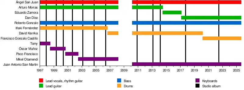 - Ángel San Juan – lead vocals, rhythm guitar (1997–2008, 2010–present)