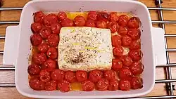 The dish gained popularity due to its simplicity and ease of preparation.[17] A Finnish food blogger name Jenni Häyrinen (@liemessa on TikTok) first introduced the recipe in 2019, but it gained popularity on TikTok in February 2021. The trend became so widespread that it led to a temporary shortage of feta cheese in Finnish grocery stores.[18][19]