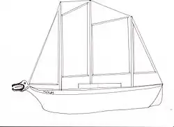 | Sail plan | Gaff-rigged schooner, 230 square ft. (21 m2) sail area, added for 1901 voyage |