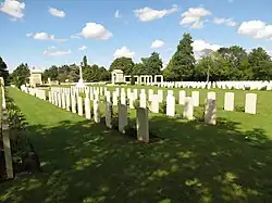 Tilly-sur-Seulles War Cemetery is a British Second World War cemetery of Commonwealth soldiers located in the village of Tilly-sur-Seulles, some 13 km (8.1 mi) south of Bayeux in Normandy. The cemetery contains 990 Commonwealth burials and 232 German graves.[1]
