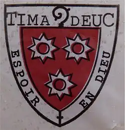 The abbey's location was chosen because Dom Joseph Hercelin, former director of the Vannes major seminary and abbot of La Trappe, was invited to establish a monastery in his native diocese of Vannes. He declined to acquire Bon-Repos Abbey and instead visited several properties owned by the aging Countess du Bot, who found their management burdensome. These included La Roche du Theil and the former seat of the lordship of Tymadeuc, which he selected. The lordship of Tymadeuc, comprising around fifty holdings, was successively owned by the Tymadeuc family (extinct in 1601), then the Cosquat, Tilly, Jocet, and du Bot families.[3] Hercelin adopted the Tymadeuc motto, "Hope in God", and purchased two nearby tenant farms.[4]