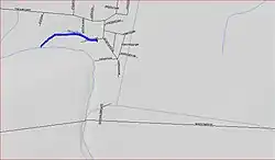 Another tributary to Rocky Brook that runs nearby is also called Timber Run.[2] This one starts in the middle of a field between Lake Drive and the original alignment of Milford Rd. It flows west-northwest to a point behind a restaurant located a few hundred feet east of the New Jersey Turnpike. From there, the creek turns west-southwest, and continues until it drains into a narrow recessed section of Peddie Lake. Much of this stream is culverted, and parts of its route are diverted around local businesses and Interchange 8 of the Turnpike.