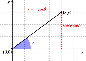 For example, consider a particle moving in a circular path. Its position is given by the displacement vector , related to the angle, θ, and radial distance, r, as defined in the figure: