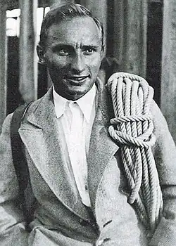 - 1950 (July 26): Fourth ascent in one very long day with a bivouac on the summit by Leo Forstenlechner and Erich Wascak. They overtake Swiss climbers Jean Fuchs, Marcel Hamel, Raymond Monney, and Robert Seiler, who achieve the fifth ascent on 27 July.[2]