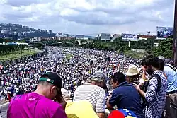 2016 protests in Venezuela began in early January following controversy surrounding the 2015 Venezuelan parliamentary elections and the increasing hardships felt by Venezuelans.[1] The series of protests originally began in February 2014 when hundreds of thousands of Venezuelans protested due to high levels of criminal violence, inflation, and chronic scarcity of basic goods because of policies created by the Venezuelan government[2][3][4][5][6] though the size of protests had decreased since 2014.