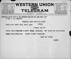 Telegram to NAWSA from Sidney P. Osborn November 1, 1916