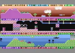 In Timeslip the player is presented with the screen divided into three sections or time zones. The top section is the planet surface with the player controlling a fighter, the middle section is set in underground cavers, and in the bottom section the player controls a mini-sub. The object of the game is to destroy 36 orbs placed within the three sections and synchronize the clocks in all three zones to 00.00 hours. If a player is hit, they receive a 30 minute penalty. In addition, if a player is hit five times, a "timeslip" occurs, which is a desynchronisation of all clocks. Sections are played one at a time and the player can switch zones at will, leaving the other two frozen in time.