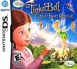 Disney Fairies: Tinker Bell and the Great Fairy Rescue is an adventure game for the Nintendo DS. Like in the previous games, the player plays as a fairy created by the player on the Mainland around Lizzy's house, using the touch screen to maneuver the character and play various minigames. The player must, for example, touch an arrow on the screen to move to another map or characters to speak to them.