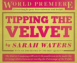 Tipping the Velvet has been adapted for the stage by Laura Wade, based on the 1998 novel of the same name by Sarah Waters.[1] The novel was previously adapted into a BBC television series in 2002.[2] On 14 April 2015, it was announced the play would receive its world premiere the same year and would begin previews at the Lyric Hammersmith on 18 September 2015, with an official opening night on 28 September, booking for a limited period until 24 October.[3] The adaption had been in production for around four years.[4]