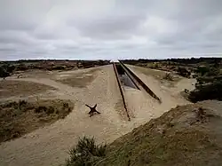 The Tirpitz Bunker started construction in 1944, and was built as part of the defense around the city of Esbjerg. Following the surrender of the German forces, construction was halted, and the bunker was therefore never completed.[3] The bunker was designed to house 2 turrets with 2 38 cm SK C/34 naval guns each.[1] After the war, the bunker was abandoned and later turned into a small museum.[4]