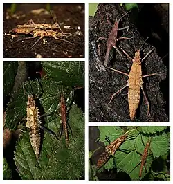 - ^ a b c Bank, S.; Buckley, T. R.; Büscher, T. H.; Bresseel, J.; Constant, J.; de Haan, M.; Dittmar, D.; Dräger, H.; Kahar, R. S.; Kang, A.; Kneubühler, B.; Langton-Myers, S. & Bradler, S. (2021). Reconstructing the nonadaptive radiation of an ancient lineage of ground-dwelling stick insects (Phasmatodea: Heteropterygidae), Systematic Entomology, DOI: 10.1111/syen.12472