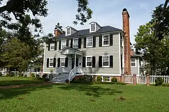 Tisdale–Jones House, also known as the New Bern City Schools Administration Building, is a historic home located at New Bern, Craven County, North Carolina. It was built about 1769, and is a 2+1⁄2-story, central hall plan frame dwelling with a large two-story rear ell. In 1958, the New Bern City Board of Education began using the building as offices; in the 1980s it was returned to private residential use.[2]