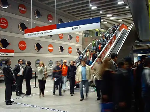The Line 1 station was opened on 22 August 1980 as part of the extension of the line from Salvador to Escuela Militar.[2] It became an interchange station between Line 1 and Line 4 on 30 November 2005, when the section of Line 4 between Tobalaba and Grecia was opened,[2] and the appearance of the station was altered.