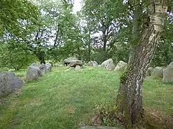 Tokkekøb is known for its many dolmens from the Bronze Age. Dæmpegårdsdyssen is located on Dampegårdssletten and dates from 4000 BC. It is 38 metres long and 9 metres wide and has two burial chambers. King Frederick VII participated in its excavation and it is therefore also known as Kongedyssen. His monogram his carved in one of the stones. Other dolmens are located at Hjortemose, Avlskarlevold and Linjevej.