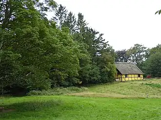 Dæmpegård is a half-timbered, thatched houselocated next to an open area, Dæmpegårdssletten, which takes its name after it.