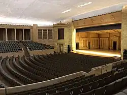 The Peristyle, a 1,750-seat concert hall in the east wing, is the principal concert space for the Toledo Symphony Orchestra and hosts the museum's Masters series. Added in 1933, it was designed in classical style to match the museum's exterior. Seating is divided into floor and riser seating, with the riser seating arranged in a half-circle, similar to a Greek theater. At the back of the riser seating are 28 Ionic columns that give the concert hall its name.