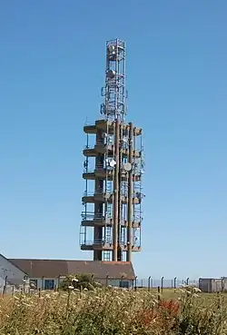 Construction of the £80,000 200-ft tower, at Tolsford Hill, began in March 1959.[1] Transmissions would be sent over the English Channel to the RTF tower at Fiennes, Pas-de-Calais. The first broadcasts were on Wednesday 1 July 1959. In 1960 it had 273 circuits.