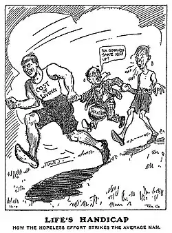 In March 1923 a full-page cartoon by Glover represented the cartoonist's anxiety of having to produce humorous material on a regular basis.[23]