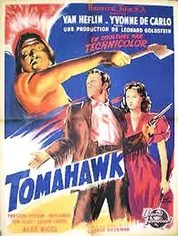 Tomahawk is a 1951 American Western film directed by George Sherman and starring Van Heflin and Yvonne De Carlo. The film is loosely based on events that took place in Wyoming in 1866 to 1868 around Fort Phil Kearny on the Bozeman Trail such as the Fetterman Fight and Wagon Box Fight. In the UK, the film was released as The Battle of Powder River.[3]