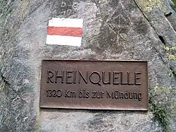 Sign for the source of the Rhine (German: Rheinquelle) near Lake Toma