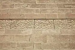There are eight surviving inscriptions in the building,[13] all Qur’anic and in naskh script. Five are made in carved stucco, two in stone (one carved and one inlaid) and one in tile mosaic.