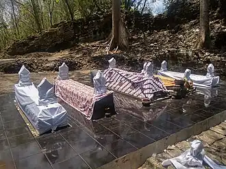 He also interpreted Mas Malang’s murmurs of "dalem, dalem, dalem..." as a reference to the courtiers and concubines jealous of her.[33][41] While ordering his soldiers to construct a tomb for the woman he loved on Mount Sentana, he also commanded the execution of the courtiers and concubines he suspected.[42][43] They were killed slowly—tied up, confined in a house, and left without food or water until they died of starvation and exhaustion.[29] All the victims were buried on Mount Sentana.[33]