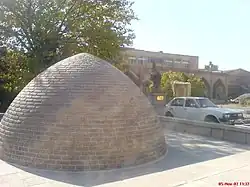 The Tomb of Two Kamals, or in short the 2-Kamal Tomb, is a funerary monument in Tabriz, Iran. Two Kamals – the 14th-century poet Kamal Khujandi and the 15th-century miniaturist Kamal ed-Din Behzad – are buried in an underground chamber below a simple stone dome. The mausoleum also houses the remains of other artists and poets. It was built in the Safavid era as part of a larger cemetery, but deteriorated over the next centuries and was only restored in 1959. In the 2010s, a school was built around the mausoleum, which houses classrooms, a museum, a library, and other places which commemorate the legacies of the artists buried therein.[1][2]