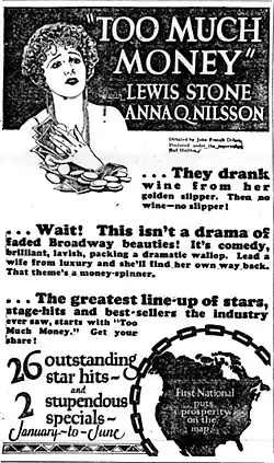 - ^ Campbell, William (January 23, 1926), "Pre-Release Review of Features: Too Much Money", Motion Picture News, 33 (4), New York City, New York: Motion Picture News, Inc.: 484, retrieved January 23, 2023