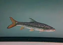 Tor putitora, the golden mahseer, putitor mahseer, or Himalayan mahseer, is an endangered species of cyprinid fish that is found in rapid streams, riverine pools, and lakes in the Himalayan region. Its native range is within the basins of the Indus, Ganges and Brahmaputra rivers.[1] It was reported to be found in the Salween river, the natural border between Thailand and Myanmar as well, but observations of it have been very rare, having only been observed three times in 28 years.[2]