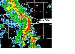 In addition to the tornadoes, widespread straight-line wind damage took place across much of the affected region, particularly on the night of October 17 as a result of a derecho that moved across the southern Great Plains into the Ozarks. Winds were reported as high as 100 mph (160 km/h) as a result of the bow echo that moved across the region.[99] Tulsa was hard hit, with at least 55 people injured (one critically) due to wind damage at the Oktoberfest event. Many mobile homes were destroyed, and widespread power outages were reported in the region including in Rogers County near Oologah where five people were injured.[100]