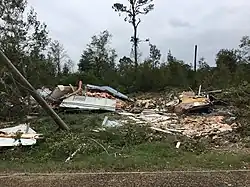 On October 31, the Storm Prediction Center issued an enhanced risk of severe weather for eastern Texas, much of Louisiana, and southwestern Mississippi. This included a 10% hatched risk area for tornadoes. Later that night, a line of severe storms with multiple embedded tornadoes moved through the region. In Texas, the towns of Cushing, Evadale, and Angleton all sustained minor to moderate damage from weak tornadoes. A supercell thunderstorm that developed ahead of the main line produced a long-tracked EF2 tornado that touched down in Alexandria, Louisiana, where several businesses sustained significant damage before the tornado continued through rural areas to the northeast, destroying multiple mobile homes, causing additional damage in Trout, and injuring two people.[85] Severe weather spread eastward throughout the region into the early morning hours of November 1, and numerous tornadoes touched down. Strong EF2 tornadoes caused damage near the Louisiana towns of Oakdale, Cheneyville, Bogalusa, and Varnado. In Mississippi, an EF1 tornado caused minor to moderate damage in Port Gibson. North of town, a second EF1 tornado resulted in an indirect fatality when a car drove into a falling tree. An EF2 tore most of the roof off of a house and snapped power poles in Morgantown as well. On November 2, despite only a marginal risk being issued by the Storm Prediction Center, scattered tornadoes continued further east in the Mid-Atlantic region and southward into Florida. Mild air being pushed into the Mid-Atlantic led to the warmest ever low temperature in November in Atlantic City on record, at 66 °F (19 °C).[86] An EF1 touched down in Baltimore, Maryland, where a wall collapse at an Amazon warehouse killed two employees. This became the first fatal tornado in Maryland since the 2002 La Plata tornado, as well as the first fatal tornado in Maryland in fall or winter.[87] An EF2 tornado tore the roof off of a house, damaged two other homes, and caused major tree damage near Crystal Hill, Virginia as well. In Florida, a few weak tornadoes also caused damage. Sixty-one tornadoes were confirmed as a result of this outbreak, which killed two people directly and resulted in a third indirect death.[59] There were also 7 injuries, plus 2 indirect injuries, and a total of $8.2 million in damage.[88]