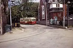 Almost all loops on the system have a minimum radius of curvature of less than 15 metres (49.2 ft).[1] The tightest curves are of 11.3 metres (37.1 ft) at Roncesvalles Carhouse and Russell Carhouse.[2] The streetcars themselves are designed for a minimum radius of 10.973 metres (36 ft).[3]