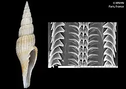 | Shell and radula of Tosapusia evelyniana (specimen at MNHN, Paris) | |