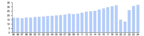 - ^ "World Tourism Barometer" (PDF). World Tourism Organization. May 2024. p. 19. Retrieved 24 June 2024.