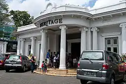 Initially the tourism, service and hospitality sector in Dutch East Indies were developed to cater the lodging, entertainment and leisure needs of domestic visitors, especially the wealthy Dutch plantation owners and merchants during their stay in the city. In the 19th century, colonial heritage hotels equipped with dance halls, live music and fine dining restaurants were established in Dutch East Indies urban areas, such as Hotel des Indes (est. 1829) in Batavia (now Jakarta), Savoy Homann Hotel (est. 1871) in Bandung, Hotel Oranje (est. 1910) in Surabaya, and Hotel De Boer in Medan. Since the 19th century Dutch East Indies has attracted visitors from The Netherlands.[28] The first national tourism bureau was the Vereeniging Toeristen Verkeer, established by Governor-General of Dutch East Indies in early 20th century, and shared their head office in Batavia with Koninklijke Nederlansch Indische Luchtfahrt Maatschapijj or KNILM (which is not a KLM subsidiary despite the similar name) that began to fly from Amsterdam to Batavia in 1929.[28] In 1913, Vereeneging Touristen Verkeer wrote a guide book about tourism places in the Indies. Since then Bali become known to international tourist with foreign tourist arrivals rose for more than 100% in 1927.[28] Much of the international tourism of the 1920s and 1930s was by international visitors on oceanic cruises. The 1930s did see a modest but significant influx of mainly European tourists and long term stayers to Bali. Many came for the blossoming arts scene in the Ubud area, which was as much a two-way exchange between the Balinese and outsiders as it was an internal phenomenon.[30]