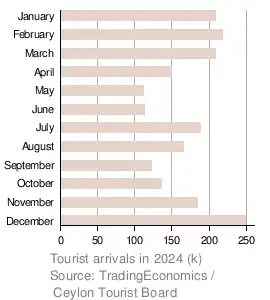 - ^ "[Up-to-Date] Sri Lanka Tourism Revenue [Data & Charts], 1966 - 2024| CEIC Data". Archived from the original on 2023-03-09. Retrieved 2023-09-22.