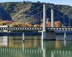 - One of the two suspension bridges which unite the town with Tain-l'Hermitage on the left bank of the river is the Passerelle Marc-Seguin. It was built in 1825 and is the oldest suspension bridge in France, today carrying only pedestrians.